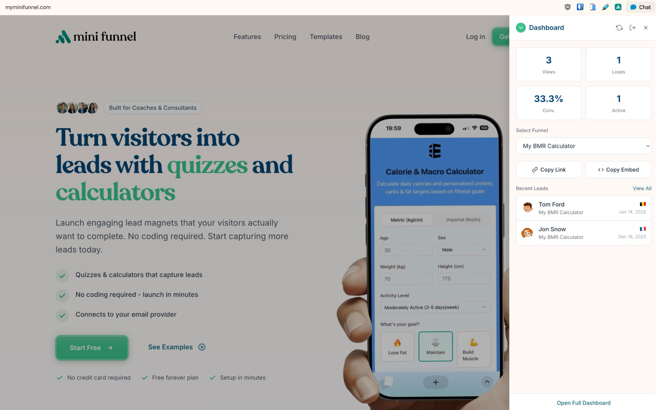 Welcome to v1! We're thrilled to officially launch My Mini Funnel โ the easiest way to create lead-generating quizzes, calculators, and assessments for your coaching business.
